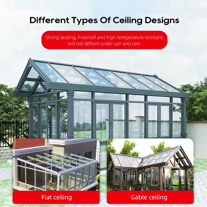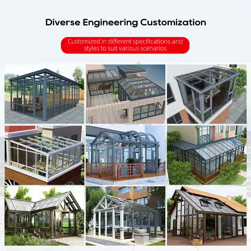 लवचिक सानुकूलन: छताच्या शैली, आकार, रंग, काचेचे प्रकार आणि उपकरणे सानुकूलित केली जाऊ शकतात
